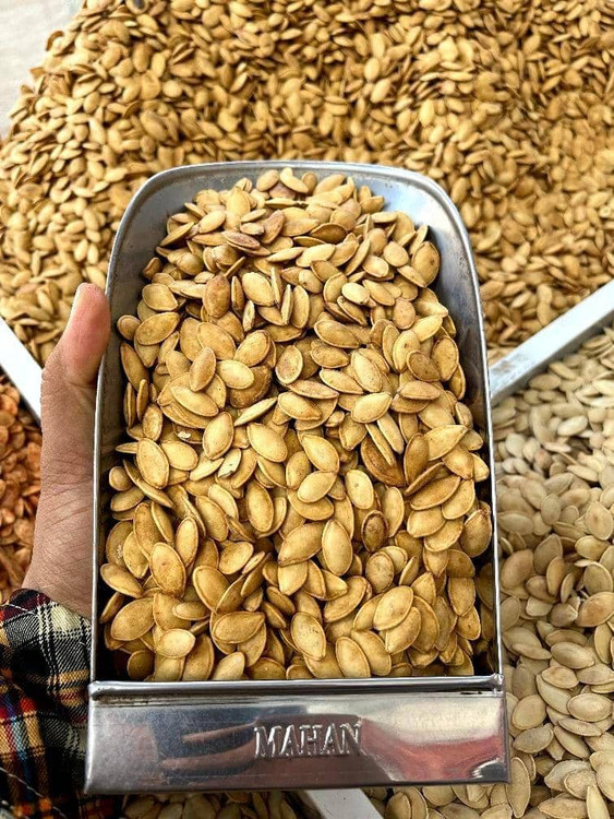تخمه کدو گوشتی دو آتیشه امسالی که تهیه شده از مزارع آذربایجان شهر خوی ، که آذربایجان محل تولید واقامت گروه ماست، که با افتخار در خدمت هم میهنان عزیزمان هستیم،